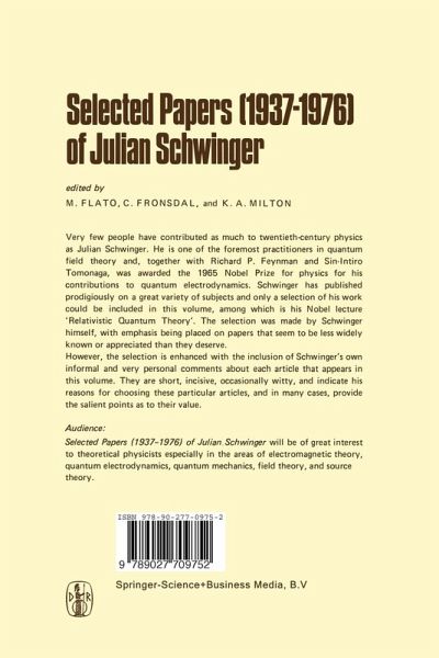 Very few people have contributed as much to twentieth-century physics as Julian Schwinger. It is therefore appropriate to offer a retrospective of his work on the occasion of his sixtieth birthday (February 12, 1978). We hope, in offering this selection of his papers, to bring to light ideas and results that may have been partly overlooked at the time of the original publication. Schwinger has published prodigiously on a great variety of subjects, as is evident from the comprehensive list of publications arranged in chronological order which appears on p. xiii. Needless to say, only a small…mehr