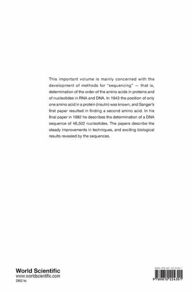 This important volume is mainly concerned with the development of methods for "sequencing" - that is, determination of the order of the amino acids in proteins and of nucleotides in RNA and DNA. In 1943 the position of only one amino acid in a protein (insulin) was known, and Sanger's first paper resulted in finding a second amino acid. In his final paper in 1982 he describes the determination of a DNA sequence of 48,502 nucleotides. The papers describe the steady improvements in techniques, and exciting biological results revealed by the sequences.