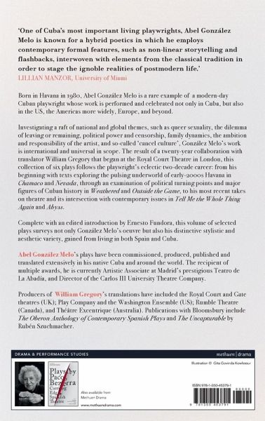 Havana-born Abel González Melo's plays have been commissioned, produced, published and translated extensively in Cuba, the UK, US, Spain, and beyond. The recipient of multiple awards, he is currently Artistic Associate at Madrid's prestigious Teatro de La Abadía, and Director of the Universidad Carlos III Theatre Company. Producers of William Gregory's translations have included the Royal Court and Gate theatres (UK); Play Company and the Washington Ensemble (US); Rumble Theatre (Canada), and Théâtre Excentrique (Australia). Publications with Bloomsbury include The Oberon Anthology of Contemporary Spanish Plays and The Uncapturable by Rubén Szuchmacher.