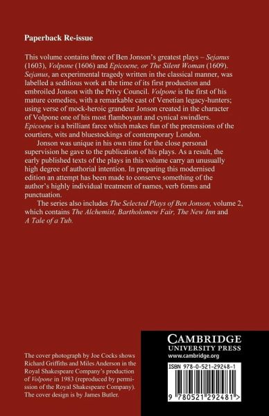 This volume contains three of Ben Jonson's greatest plays--Sejanus (1603), Volpone (1606) and Epicoene, or The Silent Woman (1609).
