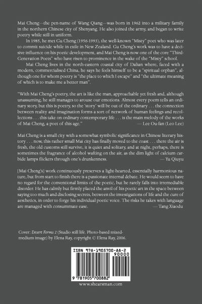 Mai Cheng (a pseudonym for Wang Qiang) was born in 1962 into a military family in the northen Chinese city of Shenyang. He also joined the army, and began to write poetry while still in uniform. In 1985, he met Gu Cheng (1956-1993), the well-known "Misty" poet who was later to commit suicide while in exile in New Zealand. Gu Cheng's work was to have a decisive influence on his poetic development, and Mai Cheng is now one of the core "Third-Generation Poets" who have risen to prominence in the wake of the "Misty" school. He lives in the north-eastern coastal city of Dalian where, faced with a modern, commercialised China, he says he feels himself to be a "spiritual orphan", although one for whom poetry is "the place to which I escape" and "the ultimate meaning of which is to make me a better man".