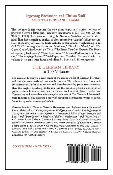 This volume brings together the two most important women writers of postwar German literature: Ingeborg Bachmann (1926-73) and Christa Wolf (b. 1929). Both grew up during the National Socialist era, and in their adult lives have remained critical of their respective societies' failure to confront the history of this era