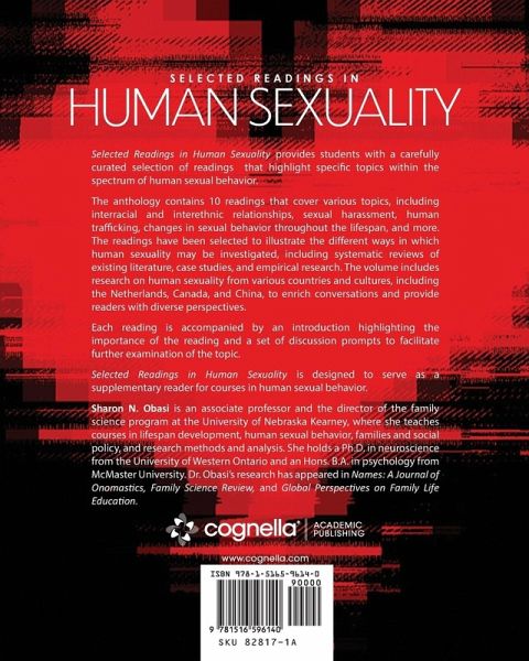 Selected Readings in Human Sexuality provides students with a carefully curated selection of readings that highlight specific topics within the spectrum of human sexual behavior. The anthology contains 10 readings that cover various topics, including interracial and interethnic relationships, sexual harassment, human trafficking, changes in sexual behavior throughout the lifespan, and more. The readings have been selected to illustrate the different ways in which human sexuality may be investigated, including systematic reviews of existing literature, case studies, and empirical research. The volume includes research on human sexuality from various countries and cultures, including the Netherlands, Canada, and China, to enrich conversations and provide readers with diverse perspectives. Each reading is accompanied by an introduction highlighting the importance of the reading and a set of discussion prompts to facilitate further examination of the topic. Selected Readings in Human Sexuality is designed to serve as a supplementary reader for courses in human sexual behavior.