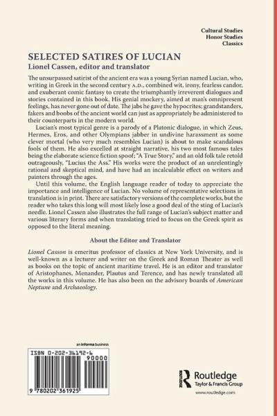 Until this volume, the English language reader of today to appreciate the importance and intelligence of Lucian. No volume of representative selections in translation is in print. There are satisfactory versions of the complete works, but the reader who takes this long will most likely lose a good deal of the sting of Lucian's needle. Lionel Cassen also illustrates the full range of Lucian's subject matter and various literary forms and when translating tried to focus on the Greek spirit as opposed to the literal meaning.