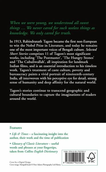 In 1913, Rabindranath Tagore became the first non-European to win the Nobel Prize in Literature, and he remains one of the most important voices of Bengali culture to this day. These short stories, written mostly in the 1890s, vividly portray Bengali life and culture. Tagore's treatment of caste culture, bureaucracy and poverty paint a vivid portrait of nineteenth-century India, and all are interwoven with Tagore's perceptive eye for detail, strong sense of humanity and deep affinity for the natural world. Tagore's stories continue to rise above geographic and cultural boundaries to capture the imaginations of readers around the world.