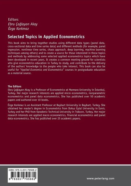 This book aims to bring together studies using different data types (panel data, cross-sectional data and time series data) and different methods (for example, panel regression, nonlinear time series, chaos approach, deep learning, machine learning techniques among others) and to create a source for those interested in these topics and methods by addressing some selected applied econometrics topics which have been developed in recent years. It creates a common meeting ground for scientists who give econometrics education in Turkey to study, and contribute to the delivery of the authors' knowledge to the people who take interest. This book can also be useful for «Applied Economics and Econometrics» courses in postgraduate education as a material source