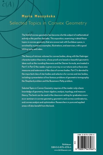 Selected Topics in Convex Geometry requires of the reader onlya basic knowledge of geometry, linear algebra, analysis, topology, and measure theory. The book can be used in the classroom setting for graduates courses or seminars in convex geometry, geometric and convex combinatorics, and convex analysis and optimization. Researchers in pure and applied areas will also benefit from the book.