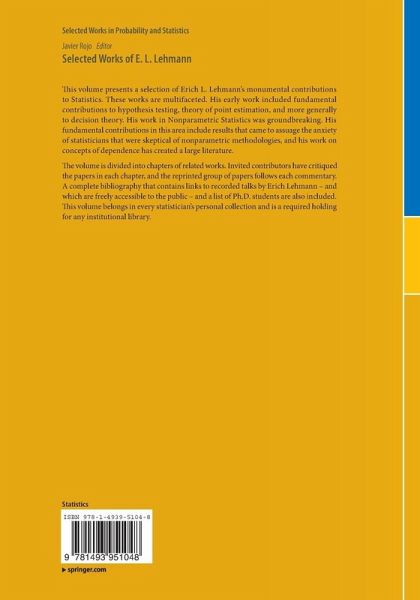 These volumes present a selection of Erich L. Lehmann's monumental contributions to Statistics. These works are multifaceted. His early work included fundamental contributions to hypothesis testing, theory of point estimation, and more generally to decision theory. His work in Nonparametric Statistics was groundbreaking. His fundamental contributions in this area include results that came to assuage the anxiety of statisticians that were skeptical of nonparametric methodologies, and his work on concepts of dependence has created a large literature.