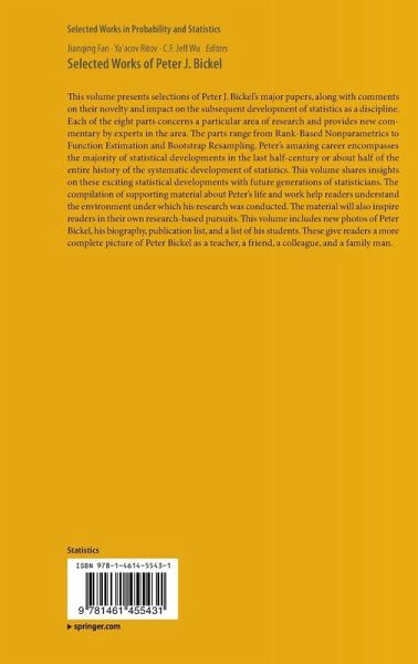 This volume presents selections of Peter J. Bickel's major papers, along with comments on their novelty and impact on the subsequent development of statistics as a discipline. Each of the eight parts concerns a particular area of research and provides new commentary by experts in the area. The parts range from Rank-Based Nonparametrics to Function Estimation and Bootstrap Resampling. Peter's amazing career encompasses the majority of statistical developments in the last half-century or about about half of the entire history of the systematic development of statistics. This volume shares insights on these exciting statistical developments with future generations of statisticians. The compilation of supporting material about Peter's life and work help readers understand the environment under which his research was conducted. The material will also inspire readers in their own research-based pursuits. This volume includes new photos of Peter Bickel, his biography, publication list, and a list of his students. These give the reader a more complete picture of Peter Bickel as a teacher, a friend, a colleague, and a family man.