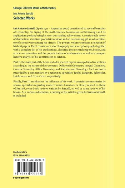 Luis Antonio Santaló (Spain 1911 - Argentina 2001) contributed to several branches of Geometry, perhaps his most outstanding achievement being his having laid the mathematical foundations of Stereology and its applications. Considerable power of abstraction, a brilliant geometric intuition and his outstanding gifts as a disseminator of science were among his virtues. The present volume contains a selection of his best papers.
