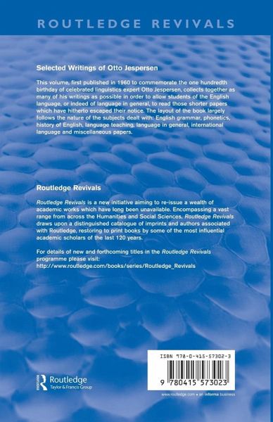 This volume, first published in 1960 to commemorate the one hundredth birthday of Jespersen, collects together as many of his writings as possible in order to allow students of the English language, or indeed of language in general, to read those shorter papers which have hitherto escaped their notice. The layout of the book largely follows the nature of the subjects dealt with: English grammar, phonetics, history of English, language teaching, language in general, international language and miscellaneous papers.