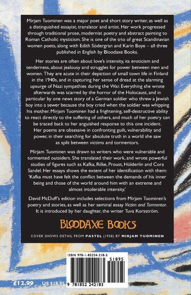 Mirjam Tuominen was a major poet and short story writer, a distinguished essayist, translator and artist. Her work progressed through traditional prose, modernist poetry and abstract painting to Roman Catholic mysticism. She is one of the trio of great Scandinavian women poets, along with Edith Södergran and Karin Boye, published by Bloodaxe.