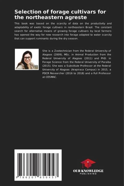 This book was based on the scarcity of data on the productivity and adaptability of exotic forage cultivars in northeastern Brazil. The constant search for alternative means of growing forage cultivars by local farmers has opened the way for new research into forage adapted to water scarcity that can support ruminants during the dry season.