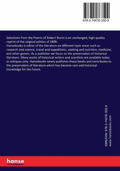 Selections from the Poems of Robert Burns is an unchanged, high-quality reprint of the original edition of 1898.
