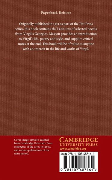 Originally published in 1921 as part of the Pitt Press series, this book contains the Latin text of selected poems from Virgil's Georgics. Masson provides an introduction to Virgil's life, poetry and style, and supplies critical notes at the end. This book will be of value to anyone with an interest in the life and works of Virgil.