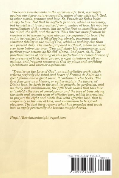 This is Part II of the Treatise: ""Treatise on the Love of God"", an authoritative work which reflects perfectly the mind and heart of Francis de Sales as a great genius and a great saint. It contains twelve books. The first four give us a history, or rather explain the theory, of Divine love, its birth in the soul, its growth, its perfection, and its decay and annihilation; the fifth book shows that this love is twofold - the love of complacency and the love of benevolence; the sixth and seventh treat of affective love, which is practiced in prayer; the eight and ninth deal with effective love, that is, conformity to the will of God, and submission to His good pleasure. The last three resume what has preceded and teach how to apply practically the lessons taught therein.