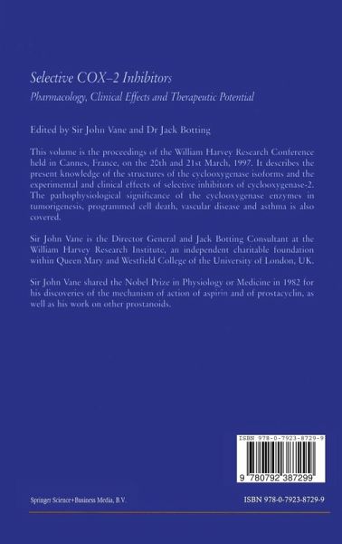 This volume is the proceedings of the William Harvey Research Conference held in Cannes, France, on the 20th and 21st March, 1997. It describes the present knowledge of the structures of the cyclooxygenase isoforms and the experimental and clinical effects of selective inhibitors of cyclooxygenase-2. The pathophysiological significance of the cyclooxygenase enzymes in tumorigenesis, programmed cell death, vascular disease and asthma is also covered.