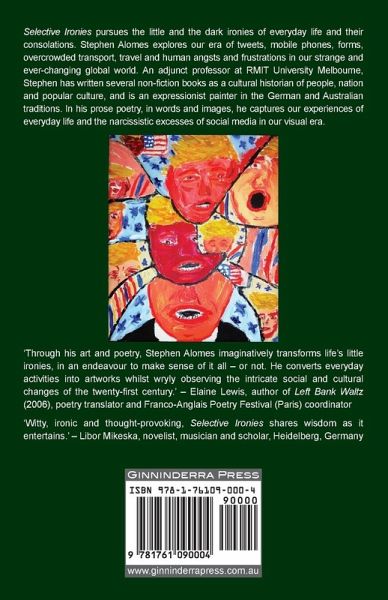 Selective Ironies pursues the little and the dark ironies of everyday life and their consolations. He explores our era of tweets, mobile phones, forms, overcrowded transport, travel and human angsts and frustrations in our strange and ever-changing global world. Stephen Alomes, an adjunct professor at RMIT University Melbourne, has written several non-fiction books, as a cultural historian of people, nation and popular culture, and is an expressionist painter in the German and Australian traditions. In his prose poetry, in words and images, he captures our experiences of everyday life and the narcissistic excesses of social media in our visual era. 'Through his art and poetry, Stephen Alomes imaginatively transforms life's little ironies, in an endeavour to make sense of it all - or not. He converts everyday activities into artworks whilst wryly observing the intricate social and cultural changes of the twenty-first century.' - Elaine Lewis, author of Left Bank Waltz (2006), poetry translator and Franco-Anglais Poetry Festival (Paris) coordinator 'Witty, ironic and thought-provoking, Selective Ironies shares wisdom as it entertains.' - Libor Mikeska, novelist, musician and scholar, Heidelberg, Germany