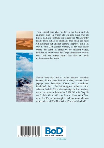 "Auf einmal kam alles wieder in mir hoch und ich erinnerte mich an früher, als ich ganz klein war, als Eritrea noch die Hoffnung von Afrika war. Meine Mutter nannte mich damals als Spitzname rhus kolah, das heißt Glücksbringer auf unserer Sprache Trigrinya, denn ich war in einer Zeit geboren worden, in der alles besser wurde, das Leben in Eritrea wieder einfacher wurde, nachdem es vom Grauen des Kriegs überschattet worden war. Doch wir ahnten nicht, dass alles nur noch schlimmer werden würde."Natnael hätte sich mit 14 nichts Besseres vorstellen können, als mit seiner Familie zu leben, in einem Land geprägt von lebendiger Kultur und traumhafter Landschaft. Doch das Militärregime wollte es nicht zulassen. Kein Schulbesuch. Unterdrückung, Folter und Gehirnwäsche stünden ihm beim Pflichtdienst in der Armee bevor. Deshalb fällt er die einstmögliche Entscheidung, um zu entkommen.Ihm stehen 7.071,70 km im Weg bis zur Freiheit. Wie schafft er es diese zu überwinden? Und wieso fühlt es sich an, als würden ihm nach jedem Kilometer neue Steine in den Weg gelegt werden?Was wenn der Körper einen aufgibt, doch der Verstand einen weitertreiben will?Ist Flucht eine Wahl oder Schicksal?