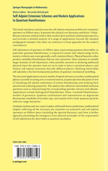 "In this book, the extension theory of symmetric operators is discussed. The presentation is modern and clear, and the book can be seen, in particular, as a standard reference for the Krein-Vishik-Birman extension theory. While in the first part of the book, the abstract framework from the operator and extension theory of symmetric operators is presented, in the second part, that takes the largest part of the book, various applications are presented in detail." (Markus Holzmann, zbMATH 1533.47001, 2024)
