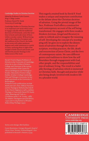 This eagerly awaited book by David F. Ford makes a unique and important contribution to the debate about the Christian doctrine of salvation. Using the pivotal image of the face, Professor Ford offers a constructive and contemporary account of the self being transformed. He engages with three modern thinkers (Levinas, Jüngel and Ricoeur) in order to rethink and reimagine the meaning of self. Developing the concept of a worshipping self, he explores the dimensions of salvation through the lenses of scripture, worship practices, the life, death and resurrection of Christ, and the lives of contemporary saints. He uses different genres and traditions to show how the self flourishes through engagement with God, other people, and the responsibilities and joys of ordinary living. The result is a habitable theology of salvation immersed in Christian faith, thought and practice while also being deeply involved with modern life in a pluralist world.