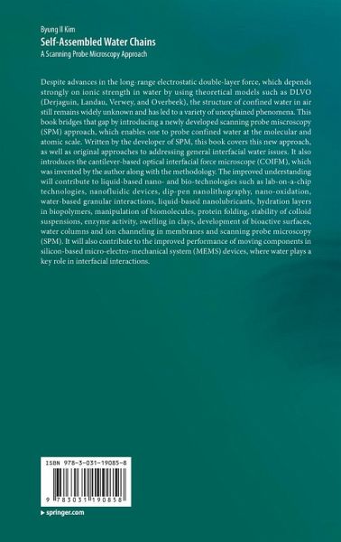 Despite advances in the long-range electrostatic double-layer force, which depends strongly on ionic strength in water by using theoretical models such as DLVO (Derjaguin, Landau, Verwey, and Overbeek), the structure of confined water in air still remains widely unknown and has led to a variety of unexplained phenomena. This book bridges that gap by introducing a newly developed scanning probe miscroscopy (SPM) approach, which enables one to probe confined water at the molecular and atomic scale. Written by the developer of SPM, this book covers this new approach, as well as original approaches to addressing general interfacial water issues. It also introduces the cantilever-based optical interfacial force microscope (COIFM), which was invented by the author along with the methodology. The improved understanding will contribute to liquid-based nano- and bio-technologies such as lab-on-a-chip technologies, nanofluidic devices, dip-pen nanolithography, nano-oxidation, water-based granular interactions, liquid-based nanolubricants, hydration layers in biopolymers, manipulation of biomolecules, protein folding, stability of colloid suspensions, enzyme activity, swelling in clays, development of bioactive surfaces, water columns and ion channeling in membranes and scanning probe microscopy (SPM). It will also contribute to the improved performance of moving components in silicon-based micro-electro-mechanical system (MEMS) devices, where water plays a key role in interfacial interactions.