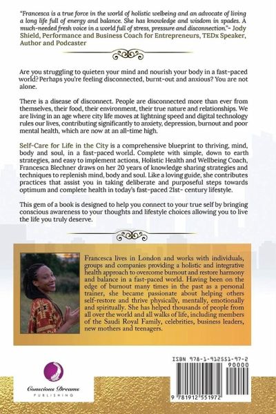 Are you struggling to quieten your mind and nourish your body in a fast-paced city? Perhaps you're feeling disconnected, burnt-out and anxious? You are not alone. There is a disease of disconnect. People are disconnected more than ever from themselves, their food, their environment, their true nature and relationships. We are living in an age where city-life moves at lightning speed and digital technology rules our lives. This has contributed significantly to anxiety, depression, burnout and poor mental health which are now at an all-time high. Self-Care for Life in the City is a practical, comprehensive blueprint to thriving, mind, body and soul, in a fast-paced city. Complete with simple, down to earth strategies, and easy to implement actions, Holistic Health and Wellbeing Coach, Francesca Blechner draws on her 20 years of knowledge sharing strategies and techniques that replenish the mind, body and soul. Like a loving guide, she contributes practices that assist you in taking deliberate and purposeful steps towards optimum and complete health in today's fast-paced 21st-century lifestyle. This gem of a book is designed to help you connect to your true self by bringing conscious awareness to your thoughts and lifestyle choices allowing you to live the life you truly deserve.