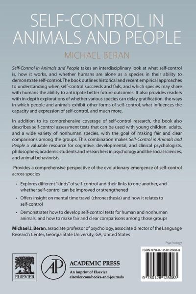 Self-Control in Animals and People takes an interdisciplinary look at what self-control is, how it works, and whether humans are alone as a species in their ability to demonstrate self-control. The book outlines historical and recent empirical approaches to understanding when self-control succeeds and fails, and which species may share with humans the ability to anticipate better future outcomes. It also provides readers with in-depth explorations of whether various species can delay gratification, the ways in which people and animals exhibit other forms of self-control, what influences the capacity and expression of self-control, and much more.