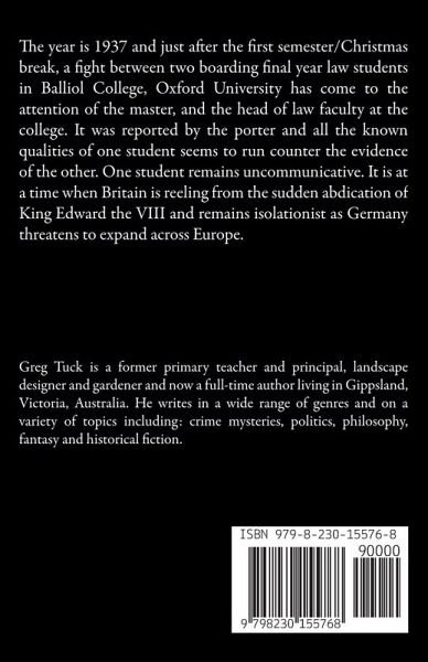 The year is 1937 and just after the first semester/Christmas break, a fight between two boarding final year law students in Balliol College, Oxford University has come to the attention of the master, and the head of law faculty at the college. It was reported by the porter and all the known qualities of one student seems to run counter the evidence of the other. One student remains uncommunicative. It is at a time when Britain is reeling from the sudden abdication of King Edward the VIII and remains isolationist as Germany threatens to expand across Europe.