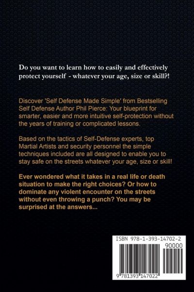Do you want to learn how to easily and effectively protect yourself - whatever your age, size or skill?! The new #1 Self Defense Bestseller - Grab Your Copy Now! Discover 'Self Defense Made Simple' from Bestselling Self Defense Author Phil Pierce: Your blueprint for smarter, easier and more intuitive self-protection without the years of training or complicated lessons. Do you want to learn how to ensure you never get hit using one special technique? Or how to use psychology 'hacks' to prevent violence before it happens and stay in control? Learn how to really use everyday objects as weapons (90% of people get this wrong!) Discover the truth behind pressure points - and how you can use them How to defend yourself against the most common attacks How to use the powerful self-defense tools your body already has Learn the exact exercises you can use to quickly and easily build a 'self-defense body' How to find the weak points on an attacker ... that you can exploit! How to choose the perfect self-defense class (and which ones are just wasting your time) Understand how to identify a threat before it ever happens How to avoid the No.1, life-threatening self-defense mistake And more! Based on the tactics of Self-Defense experts, top Martial Artists and security personnel the simple techniques included are all designed to enable you to stay safe on the streets whatever your age, size or skill! Ever wondered what it takes in a real life or death situation to make the right choices? Or how to dominate any violent encounter on the streets without even throwing a punch? You may be surprised at the answers... Grab Your Copy Now!