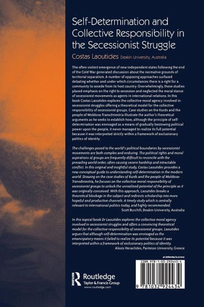 In this book Costas Laoutides explores the collective moral agency involved in secessionist struggles offering a theoretical model for the collective responsibility of secessionist groups. Case-studies on the Kurds and the people of Moldova-Transdniestria illustrate the author's theoretical arguments as he seeks to establish how, although the princ