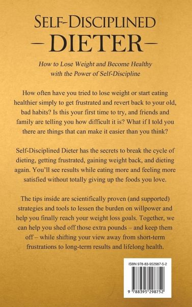 How to Lose Weight and Become Healthy with the Power of Self-Discipline How often have you tried to lose weight or start eating healthier simply to get frustrated and revert back to your old, bad habits? Is this your first time to try, and friends and family are telling you how difficult it is? What if I told you there are things that can make it easier than you think? Everyday temptations drain your determination and cause frustrating slip-ups when you’re on a diet. You become extremely aware of everything you can’t eat, and it seems like everyone else is eating those things right there. Meanwhile, you look in the mirror or at the number on the scale, and don’t see the results promised by the infomercials. Eventually, the temptations chip away at your willpower and "maybe just this once" turns into "whatever, I’ve already failed." It isn’t long before the little weight you lost has made a re-appearance, and possibly brought some friends. This scenario is too common. Self-Disciplined Dieter has the secrets to change it and break the cycle of dieting, getting frustrated, gaining weight back, and dieting again. You’ll see permanent results while eating what's good for you and feeling more satisfied without totally giving up the foods you love. Inside, you’ll learn: - how to overcome (or completely remove!) the most common obstacles that can make or break your diet (like being hungry while you're on a diet), - what daily habits contribute to setbacks and how to replace them with better alternatives to design a healthy lifestyle (just one bad habit can add more than 500 calories a day to your diet), - how to deal with cravings and temptations (including a morbid, but extremely effective mind trick), - how to like healthy foods as much as, if not more than, unhealthy foods (it's all about making small changes), - how to increase satiety to stick to your diet (the right foods can be up to seven times more satiating), - and how eating healthy can be actually cheaper than eating off a fast food dollar menu (it can be a money saving technique, too). Inside you won’t find the gimmicky "well, duh" tricks so many dieting fads say are the secret to weight-loss. In fact, they aren’t tricks at all. The tips inside are scientifically proven (and supported) strategies and tools to lessen the burden on willpower and help you finally reach your weight loss goals. You want to change your life for the better. Together, we can help you shed off those extra pounds – and keep them off – while shifting your view away from short-term frustrations to long-term results and lifelong health.