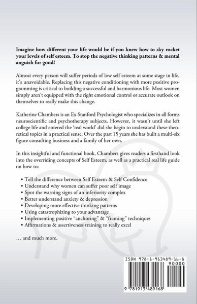 Imagine how different your life would be if you knew how to skyrocket your levels of self-esteem. To stop the negative thinking patterns & mental anguish for good! Almost every person will suffer periods of low self-esteem at some stage in life, it’s unavoidable. Replacing this negative conditioning with more positive programming is critical to building a successful and harmonious life. Most women simply aren’t equipped with the right emotional control or accurate outlook on themselves to really make this change. Katherine Chambers is an Ex Stanford Psychologist who specializes in all forms of neuroscientific and psychotherapy subjects. However, it wasn’t until she left college life and entered the ‘real world’ did she begin to understand these theoretical topics in a practical sense. Over the past 15 years, she has built a multi-six figure consulting business and a family of her own. In this insightful and functional book, Chambers gives readers a firsthand look into the overriding concepts of Self Esteem, as well as a practical real-life guide on how to: Tell the difference between Self Esteem & Self Confidence Understand why women can suffer poor self-image Spot the warning signs of an inferiority complex Better understand anxiety & depression Developing more effective thinking patterns Using catastrophizing to your advantage Implementing positive "anchoring" & "framing" techniques Affirmations & assertiveness training to really excel … and much more.