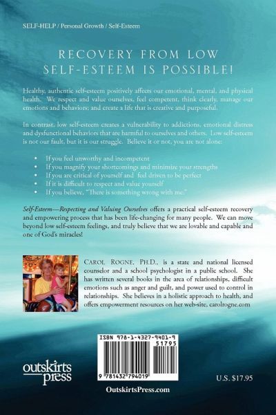 Self-Esteem - Respecting and Valuing Ourselves Healthy, authentic self-esteem positively affects our emotional, mental, and physical health. We respect and value ourselves, feel competent, think clearly, manage our emotions and behaviors; and create a life that is creative and purposeful. Low self-esteem is not our fault, but it is our struggle. We are more vulnerable to addictions, emotional distress and dysfunctional behaviors that are harmful to ourselves and others. Recovery from low self-esteem is possible! Self-Esteem - Respecting and Valuing Ourselves offers a practical self-esteem recovery and empowering process that has been life-changing for many people. We can move beyond low self-esteem feelings, and truly believe that we are lovable and capable and one of God's miracles!