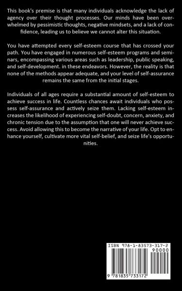 This book's premise is that many individuals acknowledge the lack of agency over their thought processes. Our minds have been overwhelmed by pessimistic thoughts, negative mindsets, and a lack of confidence, leading us to believe we cannot alter this situation. You have attempted every self-esteem course that has crossed your path. You have engaged in numerous self-esteem programs and seminars, encompassing various areas such as leadership, public speaking, and self-development. in these endeavors. However, the reality is that none of the methods appear adequate, and your level of self-assurance remains the same from the initial stages. Individuals of all ages require a substantial amount of self-esteem to achieve success in life. Countless chances await individuals who possess self-assurance and actively seize them. Lacking self-esteem increases the likelihood of experiencing self-doubt, concern, anxiety, and chronic tension due to the assumption that one will never achieve success. Avoid allowing this to become the narrative of your life. Opt to enhance yourself, cultivate more vital self-belief, and seize life's opportunities.
