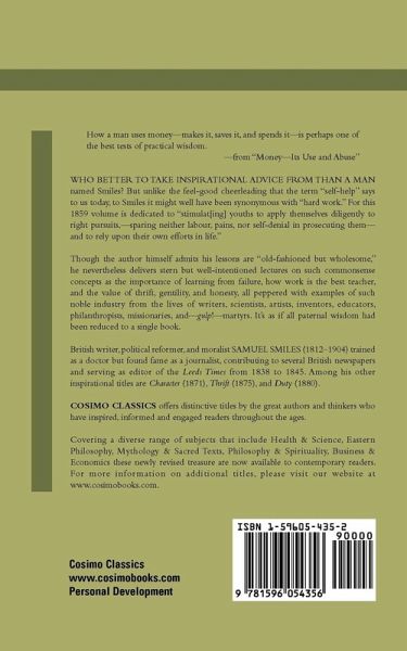 How a man uses money-makes it, saves it, and spends it-is perhaps one of the best tests of practical wisdom. -from "Money-Its Use and Abuse" Who better to take inspirational advice from than a man named Smiles? But unlike the feel-good cheerleading that the term "self-help" says to us today, to Smiles it might well have been synonymous with "hard work." For this 1859 volume is dedicated to "stimulat[ing] youths to apply themselves diligently to right pursuits,-sparing neither labour, pains, nor self-denial in prosecuting them-and to rely upon their own efforts in life." Though the author himself admits his lessons are "old-fashioned but wholesome," he nevertheless delivers stern but well-intentioned lectures on such commonsense concepts as the importance of learning from failure, how work is the best teacher, and the value of thrift, gentility, and honesty, all peppered with examples of such noble industry from the lives of writers, scientists, artists, inventors, educators, philanthropists, missionaries, and-gulp!-martyrs. It's as if all paternal wisdom had been reduced to a single book. British writer, political reformer, and moralist SAMUEL SMILES (1812-1904) trained as a doctor but found fame as a journalist, contributing to several British newspapers and serving as editor of the Leeds Times from 1838 to 1845. Among his other inspirational titles are Character (1871), Thrift (1875), and Duty (1880).