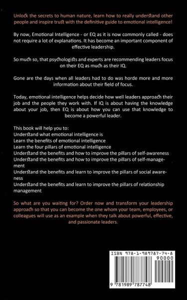 Unlock the secrets to human nature, learn how to really understand other people and inspire trust with the definitive guide to emotional intelligence! By now, Emotional Intelligence - or EQ as it is now commonly called - does not require a lot of explanations. It has become an important component of effective leadership. So much so, that psychologists and experts are recommending leaders focus on their EQ as much as their IQ. Gone are the days when all leaders had to do was horde more and more information about their field of focus. Today, emotional intelligence helps decide how well leaders approach their job and the people they work with. If IQ is about having the knowledge about your job, then EQ is about how you can use that knowledge to become a powerful leader. This book will help you to: Understand what emotional intelligence is Learn the benefits of emotional intelligence Learn the four pillars of emotional intelligence Understand the benefits and how to improve the pillars of self-awareness Understand the benefits and how to improve the pillars of self-management Understand the benefits and learn to improve the pillars of social awareness Understand the benefits and learn to improve the pillars of relationship management So what are you waiting for? Order now and transform your leadership approach so that you can become the one whom your team, employees, or colleagues will use as an example when they talk about powerful, effective, and passionate leaders.