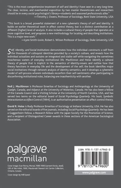 "This book is a broad, powerful statement of a new cybernetic theory of self and identity. It builds on earlier theoretical work in affect control theory, but is a distinct contribution at a different (higher) level of analysis. It also includes a cultural theory of people that operates at a more cognitive level, and proposes a new methodology for locating and describing institutions. This is a major new work." - Lynn Smith-Lovin, Robert L. Wilson Professor of Sociology, Duke University, USA