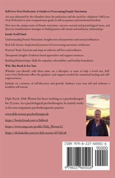 Self-Love Over Perfection: A Guide to Overcoming Female Narcissism Are you exhausted by the relentless chase for perfection and the need for validation? Self-Love Over Perfection is your compassionate guide to self-acceptance and emotional freedom. Dive into the unique traits of female narcissism, uncover societal and psychological roots, and discover transformative strategies to build genuine self-esteem and authentic relationships.