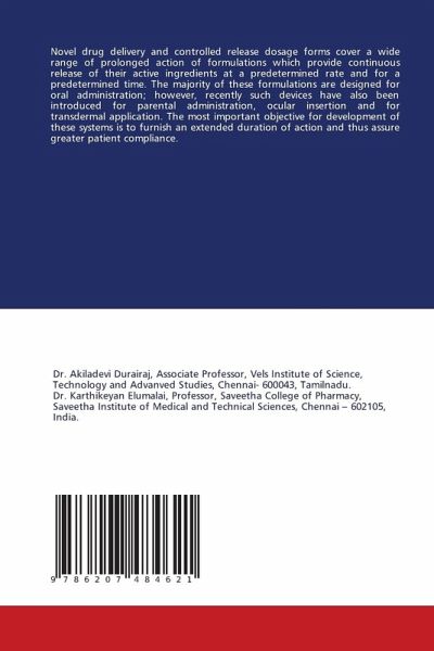 Novel drug delivery and controlled release dosage forms cover a wide range of prolonged action of formulations which provide continuous release of their active ingredients at a predetermined rate and for a predetermined time. The majority of these formulations are designed for oral administration; however, recently such devices have also been introduced for parental administration, ocular insertion and for transdermal application. The most important objective for development of these systems is to furnish an extended duration of action and thus assure greater patient compliance.