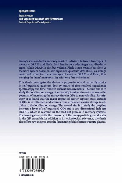 Today's semiconductor memory market is divided between two types of memory: DRAM and Flash. Each has its own advantages and disadvantages. While DRAM is fast but volatile, Flash is non-volatile but slow. A memory system based on self-organized quantum dots (QDs) as storage node could combine the advantages of modern DRAM and Flash, thus merging the latter's non-volatility with very fast write times.