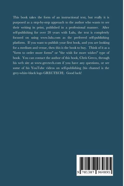 Has anyone ever told you that you should write a book? Have you taken a look a the arduous process it is to get a book approved and the rights purchased from an established publisher? Do you have a story to tell, but you only want your family to read it, or something that you want to share with just a few close friends? Welcome to the world of self-publishing. Self-Publishing has received a very bad reputation, being called "vanity publishing" and the like, but this author has published dozens of books ranging from instructional texts to children's books. As a result of this distribution received an offer from an established publishing company to publish works with them. This is something that is explained in this book, along with a step-by-step approach to self-publishing through the Lulu website. The author has used Lulu for over 20 years with great results. He hopes that you will also have that success. That is why he is sharing as much as possible about self-publishing. Good Luck and Keep Writing!