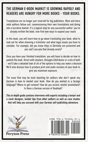 The German e-book market is growing rapidly and readers are hungry for more books - your books. Translations are no longer just reserved for big publishers. More and more indie authors follow suit, commissioning their own translations and diving into a lucrative market. It's a logical step for any successful author: you've already written the book, now find new ways to expand your reach. In this book, you will learn how to go about translating your book, what to look out for when choosing a translator and what legal issues you have to consider. For example, did you know titles in Germany are protected and you can't use one that already exists? Once you have your finished translation, you will have to decide on how to publish the book. Direct with retailers, through a distributor or a mix of both - we'll take a detailed look at all of the options to help you make an informed decision. We'll also discuss how to produce print and audio versions of your book to give you maximum exposure. The thing that may be most daunting for authors who don't speak any German is how to market your book. How do you market in a foreign language? Where to get reviews? How do you access retailer promotions? Is there a German version of Bookbub? This in-depth guide contains interviews with experts, insider tips from other authors as well as case studies that will help you succeed with your German self-publishing adventure.