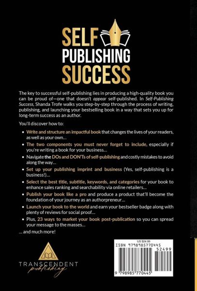 The key to successful self-publishing lies in producing a high-quality book you can be proud of-one that doesn't appear self-published. In Self-Publishing Success, Shanda Trofe walks you step-by-step through the process of writing, publishing, and launching your bestselling book in a way that sets you up for long-term success as an author. You'll discover how to: * Write and structure an impactful book that changes the lives of your readers, as well as your own... * The two components you must never forget to include, especially if you're writing a book for your business... * Navigate the DOs and DON'Ts of self-publishing and costly mistakes to avoid along the way... * Set up your publishing imprint and business (yes, self-publishing is a business!)... * Select the best title, subtitle, keywords, and categories for your book to enhance sales ranking and searchability via online retailers... * Publish your book like a pro and produce a product that'll become the foundation of your journey as an authorpreneur... * Launch your book to the world and earn your bestseller badge along with plenty of reviews for social proof... * Plus, 23 ways to market your book post-publication so you can spread your message to the masses... ... and much more! Packed with success tips and actionable steps, Self-Publishing Success is a must-read for today's indie author.