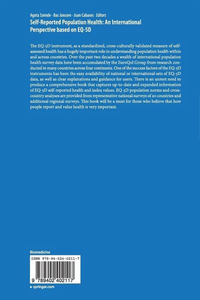 The EQ-5D instrument, as a standardized, cross-culturally validated measure of self-assessed health has a hugely important role in understanding population health within and across countries. Over the past two decades a wealth of international population health survey data have been accumulated by the EuroQol Group from research conducted in many countries across four continents. One of the success factors of the EQ-5D instruments has been the easy availability of national or international sets of EQ-5D data, as well as clear explanations and guidance for users. There is an unmet need to produce a comprehensive book that captures up-to-date and expanded information of EQ-5D self-reported health and index values. EQ-5D population norms and cross-country analyses are provided from representative national surveys of 20 countries and additional regional surveys. This book will be a must for those who believe that how people report and value health is very important.
