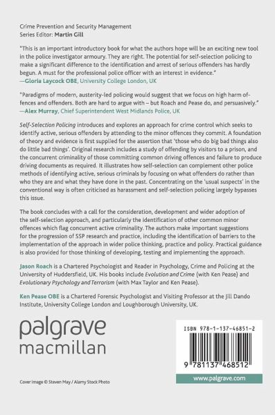 Self-Selection Policing introduces and explores an approach for crime control which seeks to identify active, serious offenders by attending to the minor offences they commit. A foundation of theory and evidence is first supplied for the assertion that 'those who do big bad things also do little bad things'. Original research presented in the book includes a study of offending by visitors to a prison, and the concurrent criminality of those committing common driving offences and failure to produce driving documents as required. It illustrates how self-selection can complement other police methods of identifying active, serious criminals by focusing on what offenders do rather than who they are and what they have done in the past. Concentrating on the 'usual suspects' in the conventional way is often criticised as harassment and self-selection policing largely bypasses the issue of fairness this raises.