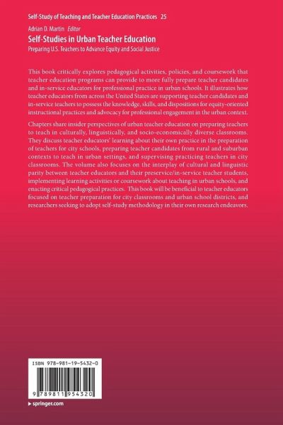 Chapters share insider perspectives of urban teacher education on preparing teachers to teach in culturally, linguistically, and socio-economically diverse classrooms. They discuss teacher educators' learning about their own practice in the preparation of teachers for city schools, preparing teacher candidates from rural and suburban contexts to teach in urban settings, and supervising practicing teachers in city classrooms. The volume also focuses on the interplay of cultural and linguistic parity between teacher educators and their preservice/in-service teacher students, implementing learning activities or coursework about teaching in urban schools, and enacting critical pedagogical practices.