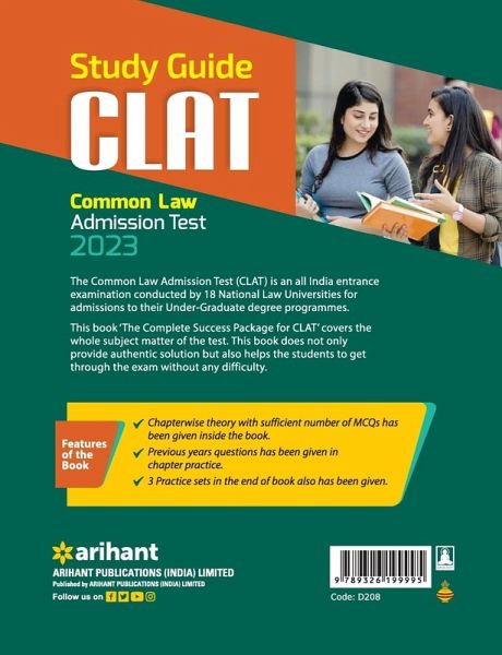 "The Self Study Guide CLAT 2023" is a comprehensive text book that is designed to give complete assistance for the preparation. The entire syllabus in this book is divided into section, each section deals with a subject. Every chapter is provided with good number of theories and questions for quick revision of topics, making it a complete success package. Previous Years' Questions and practice sets provided in the book help aspirants to analyze their level of preparation. Each Question is facilitated with detailed solutions to strengthen the concepts. Students who desire to score well in CLAT, this self-study guide is a perfect choice for them. 1. The Self Study Guide for the preparation of CLAT 2023 2. The book is divided into 6 Sections 3. Good number of MCQs have been provided for practice 4. Chapterwise Previous Years Papers and 3 Crack sets are given for thorough practice 5. Authentic Solutions are given for the complete assistance TABLE OF CONTENT CLAT Solved Paper [2022-2017], Legal Aptitude, Indian Constitution, English Language, Mathematics, Logical Reasoning, General Knowledge, Practice Sets (1-3).