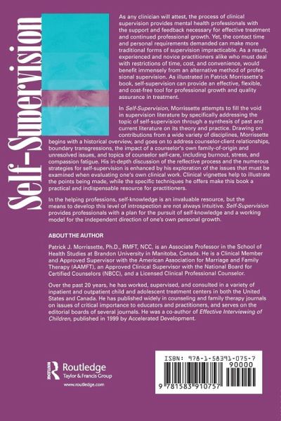 Self-Supervision synthesizes past and current literature on the theory and practice of self-supervision and provides counselors and human service professionals with a plan for the pursuit of independent professional growth.