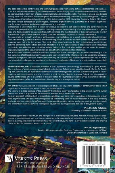 The book deals with a controversial and seemingly paradoxical relationship between selflessness and business. It depicts the primary and lasting controversy between the selfish (egoistic, competitive) and selfless (pro-social, co-operative) behavior in view of social, organizational and individual benefits. Therefore, it takes a step towards finding a solution to some of the challenges of the twenty-first century, particularly sustainable growth. The miscellaneous and transatlantic background of the Authors origins (USA, Colombia, Germany, Poland, UK, Spain) and their various perspectives (psychological, economic or philosophical) guarantee multi-voiced argumentation for strong relationships between selflessness and business. Selflessness is understood from a social perspective as related to self-transcendence and connectedness to others. This perspective can be helpful in providing a deeper understanding of pro-social behavior in organizations and its implications for productivity and effectiveness. The manifestations of this approach can be found in acts such as organizational altruism, loyalty, quantum leadership, or pro-social vocational interests. One can make an in-depth analysis of selflessness's manifestations on a social, organizational and individual level. The ensuing question is how to achieve self-regulation in order to maintain sustainable growth, and selflessness turns out to be the answer. This book offers strong evidence for high organizational and individual benefits stemming from selfless behavior. Therefore, it is not selfish behavior that enables and encourages productivity and effectiveness but rather selfless behavior. The book also tackles gender issues in business, especially regarding the social female role as being traditionally related to selflessness. The authors aim to reveal possible solutions to present and future challenges and enhance the meaning of positive outcomes of selfless behavior in business and work environments, which seems to be crucial and indispensable for future growth. The book will be useful not only for academic and business specialists but also for everyone interested in a broader perspective at contemporary challenges of business and organizational psychology.